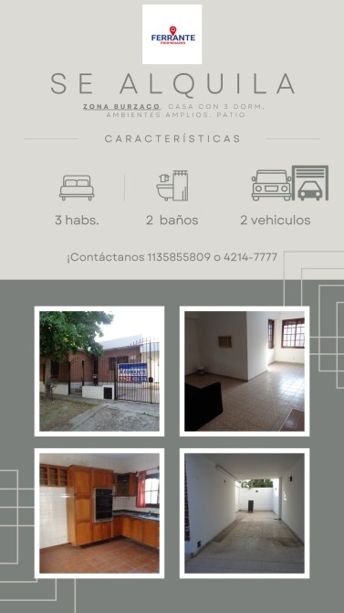 A 3 CUADRAS DE LA PLAZA DE BURZACO, A 5 CUADRAS DE ESTACION DEL TREN DE BURZACO
